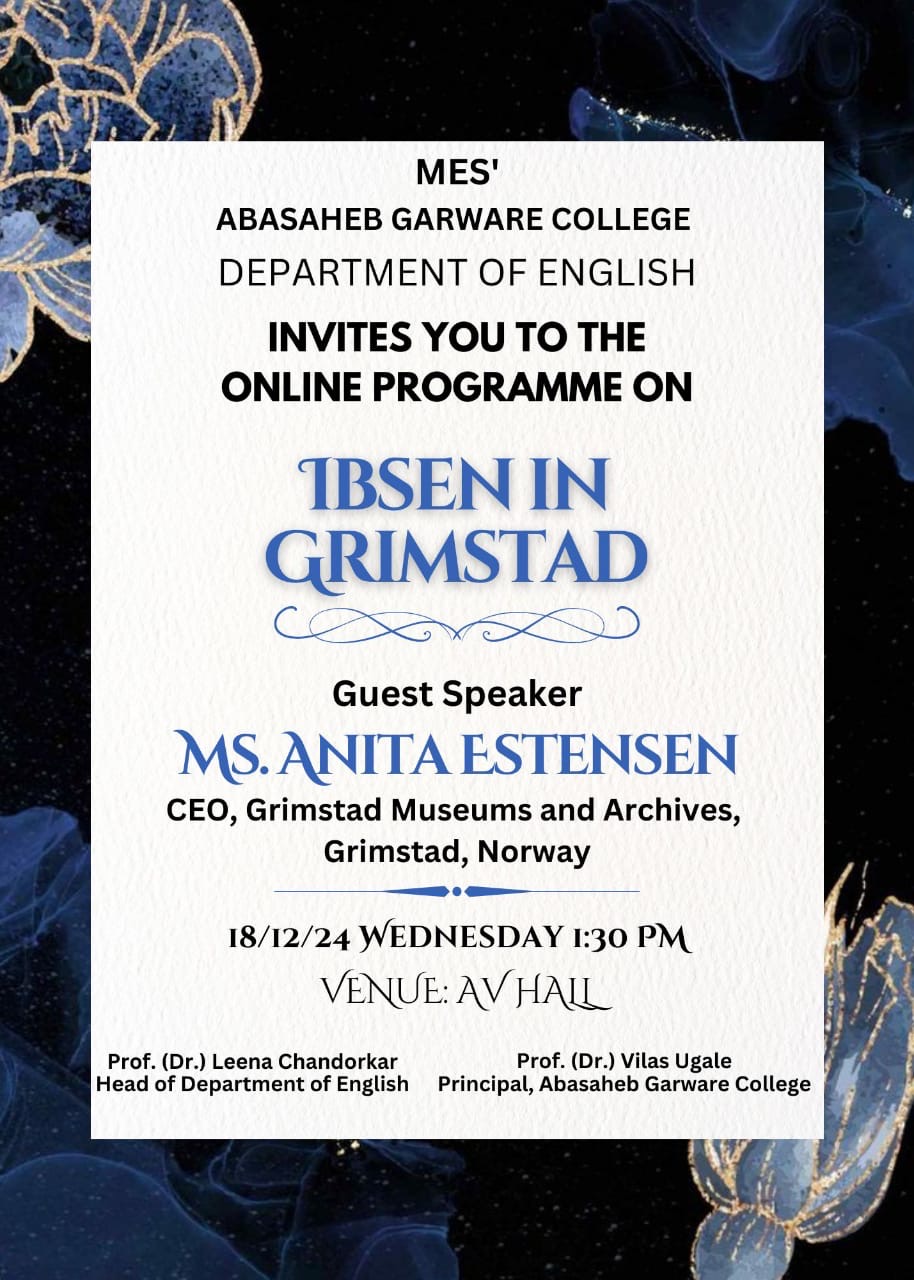 - A programme on ‘Ibsen in Grimstad’ was organised on 18th December 2024 in the hybrid mode. The students were taken on a virtual guided tour of the Ibsen Museum in Norway by Ms. Anita Estensen, CEO of Grimstad Museums and Achieves, Norway.